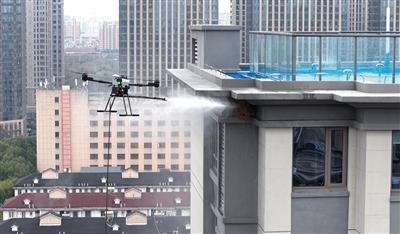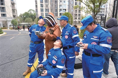 1月27日上午,救援队6名队员携带载重20公斤的无人机及高压水枪抵达天杭社区。经过约一个半小时的空中精准作业,无人机成功将这一高空马蜂窝清除。