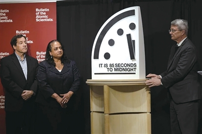 美国《原子科学家公报》1月27日说,受核武器威胁上升、人工智能等颠覆性技术带来不确定性以及气候变化等因素影响,人类文明面临前所未有的危机。该杂志将“末日之钟”指针向前拨4秒,距离象征世界末日的午夜85秒,为该机制设立以来最接近“末日”的水平。