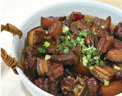 我是慢慢炖煮了一个半小时,皮很Q弹,肉嫩不柴不塞牙,肥而不腻,很香。从口味口感来说,都跟普通猪肉是不同的,红烧很不错。