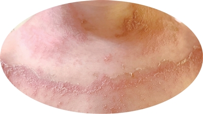 更令人意想不到的是,磊磊身上的皮肤症状也开始在爸爸、妈妈身上蔓延——爸爸的腹股沟区域出现发红、脱皮,妈妈的双侧胳膊肘内侧也有了红斑和细碎的皮屑……