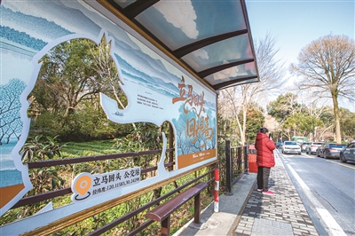 这段“解说”也被做成标识牌,立在“立马回头”公交站牌旁,成为杭州少见的自带“解说百科”的公交站。如今,这里又设立了“立马回头,回头见喜”主题打卡亭牌,镂空的骏马后面是大片的茶田和葱茏的植物,站台还带上了slogan:立马回头,回头见喜。