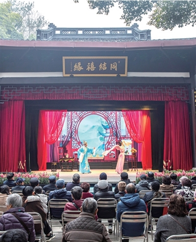 作为黄龙越(杭)剧团的核心演出阵地,黄龙洞圆缘民俗园内的禧园舞台全年365天不间断上演越剧、杭剧以及民乐演出,以年均超千场的演出量搭建起老百姓触手可及的文化桥梁。