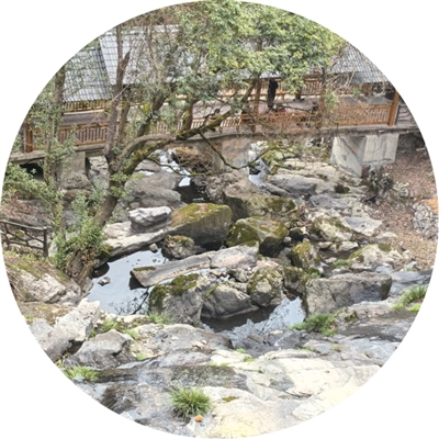 村口有几株百年老树,树干粗得一个人抱不过来。沿着溪水,游步道弯弯绕绕往下延伸。顺着游步道往下走,能一直走到飞云湖。今年再去,发现大石头上面刻着“塘山林溪谷”。