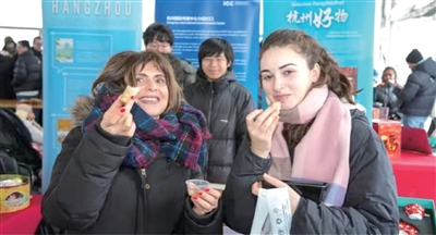 庙会期间,杭州国际传播中心设立了Hangzhoufeel (韵味杭州)专题展位,集中展示“杭州好物”系列产品,包括杭州知味观传统点心、西湖龙井茶、Hangzhoufeel 文创暖水袋以及“临平造”代表——楠宋芳菲逐燕咖啡具礼盒、中药合香珠手串等,全面呈现杭州兼具传统底蕴与现代创新的城市特色。展台通过美食试吃、文创及特色产品展示与面对面交流等形式,让法国民众在开放热闹的节庆氛围中,生动感受杭州的城市活力与创新魅力,将杭州的产业故事、创新能力与开放形象转化为欧洲公众易于理解、乐于参与的城市体验。当地市民奥罗尔在品尝杭州点心和龙井茶后表示,相较于法国传统甜点,杭州点心口感清爽更加健康,还带有淡淡茶香,令他印象深刻。在巴黎索邦大学修过中医实践与理念课程的大学生托马斯对现场展示的中药合香珠手串表现出浓厚兴趣,对中医文化有了更直观生动的认识。在法国生活30年的浙江侨胞王先生此前刚刚前往杭州旅游,深感震撼。在杭州展台前,他主动向同行者介绍杭州的数字经济发展和城市变化,并热情推荐前往杭州旅游。