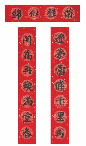 整副春联紧扣马年主题,既寓意奋发向前、逐梦未来,也传递出对新一年蓬勃气象和美好前程的祝愿。