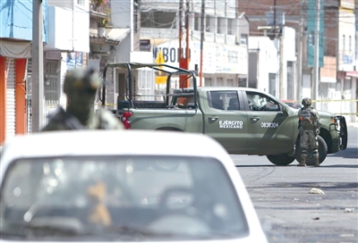 2月22日,士兵在墨西哥瓜纳华托州首府瓜纳华托街头警戒。据新华社