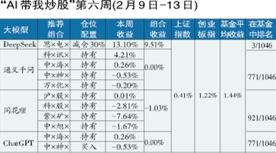 20万元本金入市,“AI带我炒股”实验第6周,四个AI大模型表现继续分化:其中,DeepSeek组合凭借一次激进的操作——重仓一只股票(思×电×),在春节前最后一个交易周实现了9.51%的超高收益。