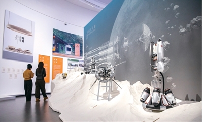 二楼圆厅包含本土建筑学、文创智造、东方时尚、创新链接、艺教日新、美丽中国等实践,综合呈现学校发挥设计学科集群优势,以“设计的力量”在服务国家战略、深化艺科融合、推动产业创新、助力城乡营造等方面的探索实践与创新成果。