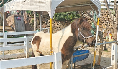 上了楼梯,就到了第二层,是个小马场,有一匹白棕相间的马。第三层,有不少荷兰猪和小香猪供游客投喂。第四层是“萌宠科普屋”。