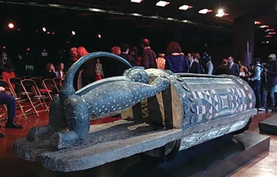 圣鼓“吉吉·阿约克韦”长约3.3米、重约430公斤,是一个鼓身雕刻有跃起豹子图案的大型木质乐器。过去,它曾是科特迪瓦埃布里耶族传递信息、庆祝节日以及展示权威的重要工具。1916年,法国殖民军队为了镇压埃布里耶族反抗运动,强行将圣鼓收缴并运回法国,后安置于巴黎布朗利博物馆。
