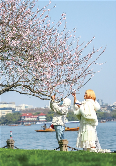 春风和煦,杨柳依依,杭州人印象中春天的样子,一定包括白堤上“间株杨柳间株桃”的情景。