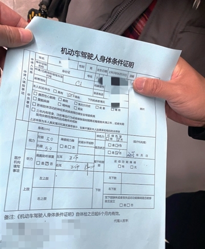 相较正常体检,黄先生多了一张《机动车驾驶人身体条件证明》体检单,项目包括:辨色力、视力及矫正情况、听力等。半小时后,黄先生完成了体检。