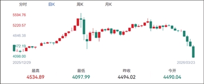 Wind数据显示,现货黄金价格在今年1月29日一度攀升至5598.75美元/盎司的高点。不过从今年3月初开始,现货黄金价格呈现总体向下趋势,这也使得许多前期高位买入黄金的投资者损失惨重。