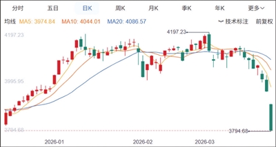 昨日,上证指数盘中跌幅一度超过3.8%,失守3800点整数关口,至收盘时下跌3.63%,报3813.28点,两市逾5100股下跌。