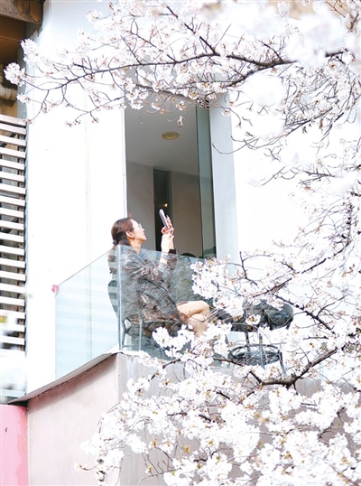 信义坊“樱花王”正值盛花期 记者 江玥 摄