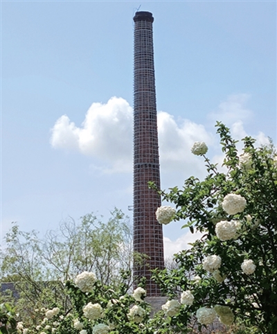 眉山岛上的大烟囱还在,已经箍住加固起来。
