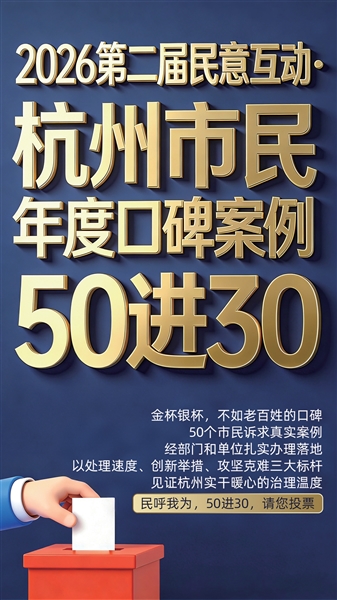 金杯银杯,不如老百姓的口碑,2026第二届杭州市民口碑案例评选50进30开启。
