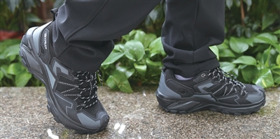 样品是黑色酷酷的,一看就是印象中户外登山鞋的样子。鞋底是一颗颗鲨齿状纹路,抓地感不错。鞋子看着不小,但分量挺轻盈。