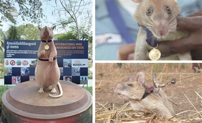 4月4日是“国际提高地雷意识和协助地雷行动日”,前一天,柬埔寨为一只非洲巨颊囊鼠的雕像揭幕,以纪念这只啮齿类动物为柬埔寨扫雷事业所作贡献。