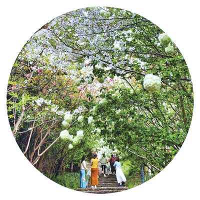 位于眉山路的绣球主题场景“湘遇绣球·花漾叠影” 周祖友 摄
