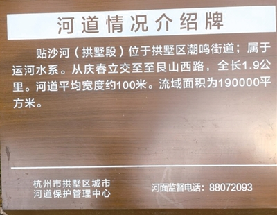 4月8日,“橙友Nj14XZrQ”在橙柿互动App橙柿直通车论坛发帖:拱墅区这个贴沙河河道情况介绍牌,“从庆春立交至至艮山西路”,多出了一个“至”字。此后的文字都是介绍贴沙河的长、宽和面积,中间似乎没有必要连用两个句号。除此之外,开头一句话中间,是否应改为逗号才对?