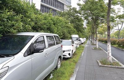 市民孙先生反映:余杭塘路和莫干山路西南的绿化带里有很多车辆违停。