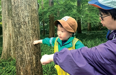 “这是樟树,是内蒙古没有的樟树。”内蒙古小朋友在杭州第一次摸到了樟树。