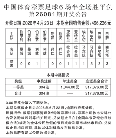 体育彩票开奖公告