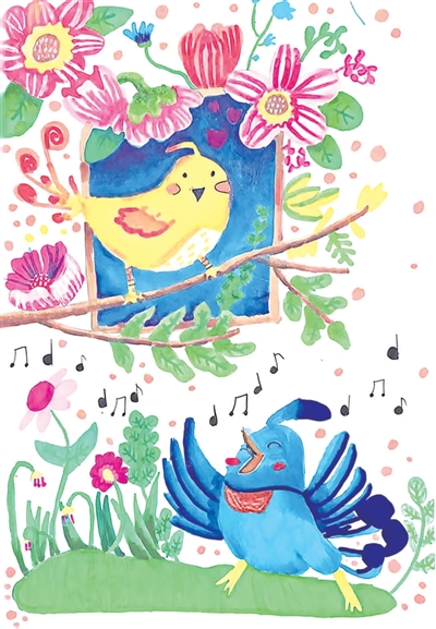 插画狮:《春天的歌》杭州江南实验学校一(1)班 朱晴方