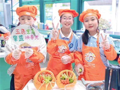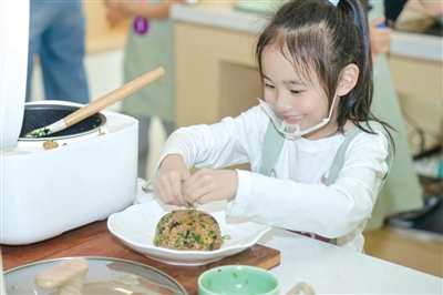 厨神争霸赛 育才新荷小学每年都会举行“金牌小厨神”争霸赛,今年已经是第三届了。煎炒烹炸煮,小厨神们锅铲翻飞,香气弥漫校园。塘栖粢毛肉圆、临平红烧羊肉……一道道地道佳肴,不仅藏着乡土味道,更传承着家乡文化。