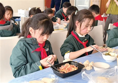你最爱吃什么馅? 杭州市东冠小学的四年级学生,最近举行了一场激烈的包饺子比赛。同学们带着各式各样的食材齐聚一堂,鲜香的韭菜鸡蛋馅、爽口的芹菜胡萝卜猪肉馅应有尽有。