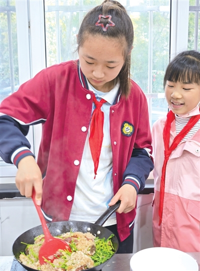 冬去春来,我下厨 “腊肉要先煸出油,香味才能渗到饭里。”杭州市长青小学的烹饪教室里,“私房菜”社团老师正带着同学们学习本学期第一道菜——冬去春来饭。腊肉、春笋、豌豆、羊肚菌、腊肠、豆芽,学生们有条不紊,在烟火气中学会生活小技能。