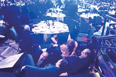 此外,晚宴会场内部增设多重安防部署。特勤局在特朗普周边设置专属警戒圈,布设隔离缓冲区域,将主桌人员与其他人员隔开。特朗普就座的主桌下方暗藏防弹装甲板,近旁部署有特勤局特工随时待命。