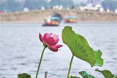 时至寒露节气,在西湖湖面上,大部分荷花已进入残荷阶段,但在西湖“北街寻梦”碑及茅家埠月湖楼附近的水域里,一种名为“西湖秋韵”的荷花却在近日惊喜绽放,展露西湖秋日的别样风韵。据悉,“西湖秋韵”是新引种的荷花,其花期一般可持续到11月上中旬。
