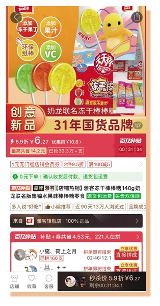 在平台政策下,雅客的大爆品战略也迈出了重要一步。其联合江南大学研发的一款冻干棒棒糖,今年4月一登陆拼多多销量就突破了六万支,上线三个月销量突破三十万支。