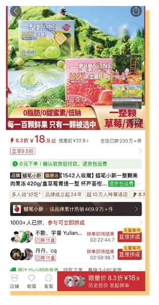 在“一整颗果肉冻”的带动下,蜡笔小新去年在拼多多的销售额突破千万元,并有望在今年实现翻倍增长。