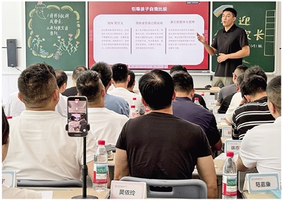 段誉是名“90后”,头一次主讲“爸爸家长会”,她准备了30多页PPT,和爸爸们交流了40多分钟,“我刚带完一届初三学生,明显感觉爸爸在教育中参与得更多的孩子,意志品质和抗挫折能力普遍更强,而且爸爸在规则建立和责任意识培养中的作用不可替代。”