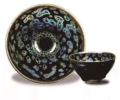 周武说,天目窑的工匠善于就地取材,龙窑烧制时,窑内的温度、湿度、氧气含量稍有变化,釉料中的铁元素便会以不同的形态结晶——可能是拉长成丝的兔毫,可能是聚成斑点的油滴。比起官窑瓷器的规整对称,天目盏正好契合宋代文人“道法自然”的审美追求。