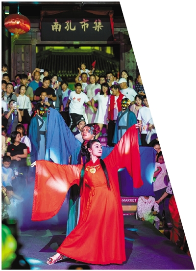 在古城核心街区,由西安高腔传习所打造的特色主题演出,每日晚间轮番上演,同样成了游客们争相合影打卡的“爆款”。其中,情景剧《三衢传说》深度融合衢州本土文化,以“衢州三怪”传说为核心,生动展现衢州古城历史人文风貌。《水浒外传之谁是高俅》则创新采用全街区沉浸式演出形式,让观众深度参与剧情,体验《水浒传》衍生故事的独特魅力。在中秋之夜,衢州古城内还将特别呈现《今夕明月》大型中秋主题民族音乐会,以民族音乐演绎中秋团圆意境。