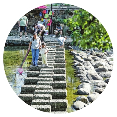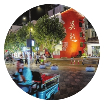 今年4月28日起,富阳龙门古镇取消了大门票,千年街巷向游人敞开怀抱。10月5日,古镇入口的校场变身“第二观赛空间”——美食市集环抱四周,大屏幕前座椅齐整。夜幕中,富阳队对阵苍南队的激战在这里同步直播。
