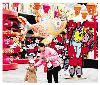 临近岁末,西溪印象城在门口广场上搭建起一条红红火火的“溜溜街”,用数百个灯笼及鲤鱼灯、走马灯、生肖马、招财猫、舞狮娃、小雪人等大型卡通形象营造起浓浓的年味,开启辞旧迎新的跨年旺市。记者 李忠 摄
