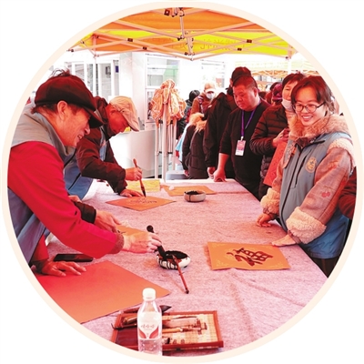 小图:当日,市委宣传部(市文明办)、上城区文明办、清波街道张能庆公益服务站在吴山广场共同开展“情聚吴山·福粥送暖——我们的节日·腊八”主题活动,为过往的市民游客免费书写春联、福帖,派送腊八粥,以传统节日为载体,为寒冷的冬日注入暖流,营造欢乐祥和、文明互助的浓厚氛围。