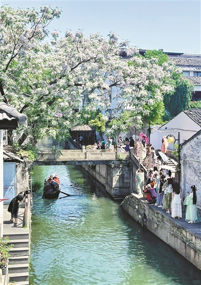 作为网红苦楝树的核心聚集地,府山街道今年首次联合视联文化推出寻迹楝花主题活动,进一步拓展IP文旅场景。“我们将串联书圣故里、仓桥直街、八字桥等网红楝树点位,打造寻迹楝花citywalk打卡路线,设置寻宝打卡环节,同步联动主题市集,邀请15家至20家摊主入驻,让游客在寻花打卡中深度感受古城韵味,提升消费黏性。”府山街道宣统委员骆斌介绍。