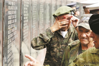 图为4月2日,在阿根廷布宜诺斯艾利斯举行的纪念马尔维纳斯群岛战争活动上,老兵在马岛战争阵亡将士纪念碑前掩面而泣。阿根廷总统米莱在纪念活动上重申对马岛(英称福克兰群岛)及争议区域的主权。