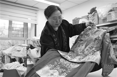 12月13日,河北省非物质文化遗产项目“王氏宫绣”代表性传承人王国荣展示自己的刺绣作品。王国荣潜心研究刺绣30余年,近年来在家乡隆化县创立工作室,为高端定制服饰进行代加工,非遗技艺得到传承的同时,还带动当地40多名绣娘发展“指尖经济”,工坊年收益达120余万元。