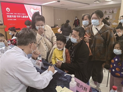 随后,来自杭州市儿科医院的专家和我中心儿科专家一起为辖区儿童开展义诊服务。现场近百名儿童家长早早地等候在活动现场,排起长队。