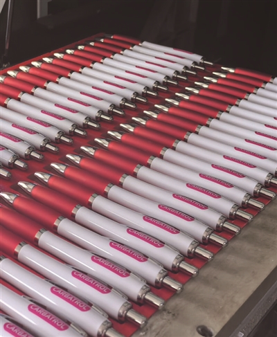 ②质检人员正在检查刚印刷完毕的定制笔