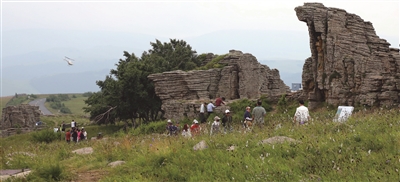 7月24日,游客在内蒙古自治区赤峰市克什克腾旗阿斯哈图石林游览。水草丰美的内蒙古大草原正值暑期旅游旺季,吸引各地游客纷至沓来,领略美丽风光。