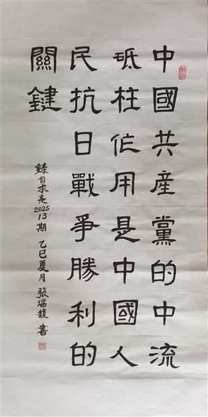 如今,抗日战争胜利虽已过去了80年,但我们不能忘记那段历史,要居安思危,有备才能无后患!因此我又写了:犯我三光迹已陈,九州春满百花新。睦邻友好方针正,平等邦交国策真。但见豺狼兴战火,故磨刀剑止烽尘。东洋抵赖侵华罪,指证屍坑醒世人!