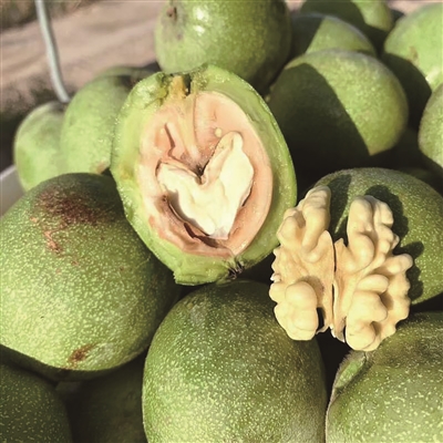阿克苏核桃是中国国家地理标志产品,不管是鲜食还是制成干果,都很受市场欢迎,不过吃过鲜核桃的人很少。牛艳青介绍,青皮鲜食核桃就是185纸皮核桃的鲜果,富含不饱和脂肪酸和抗氧化物质,被当地人称为“绿宝石”,一年只有20天黄金赏味期。眼下,青皮鲜食核桃赏味期已过三分之一,想尝鲜的小伙伴可要抓紧了。